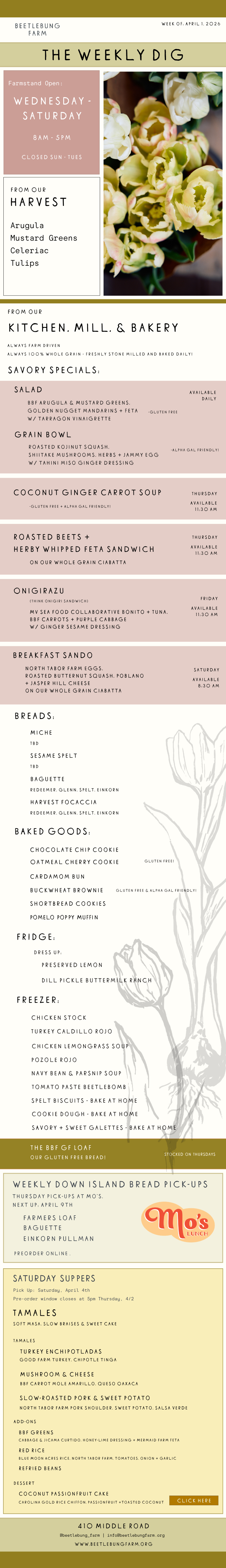 Sign up for our Weekly Dig email for our up to date offerings.